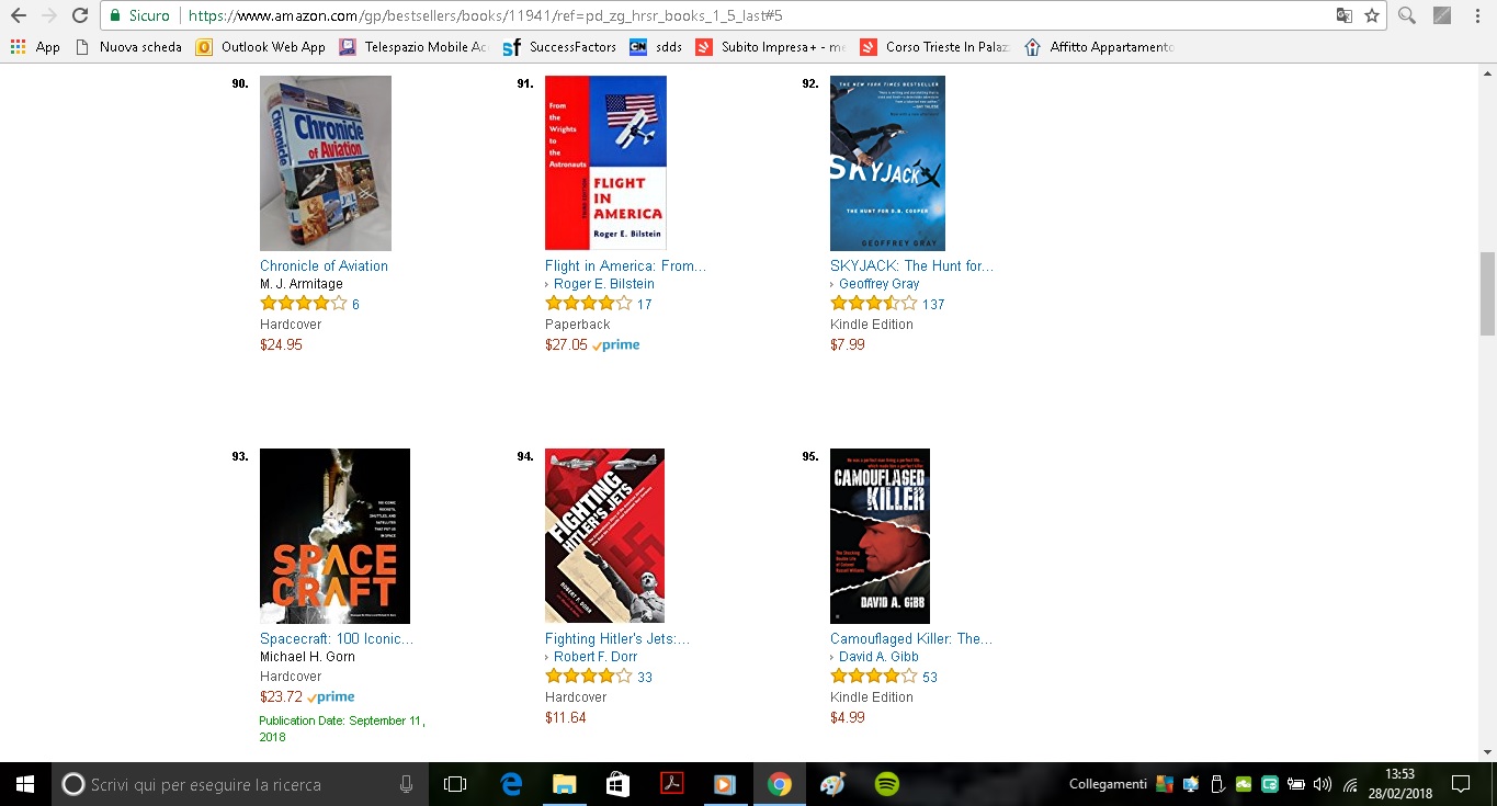 Da stamattina “Spacecraft” è entrato nella lista dei primi 100 titoli più venduti da Amazon sotto la voce “Aviation History”.