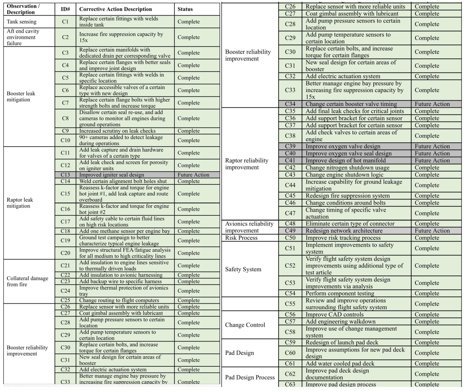 Quell’elenco non lo ha fatto la FAA che, per l’appunto, non ha neanche lontanemnte le competenze tecniche specifiche necessarie a progettare e sviluppare razzi: se le avesse non ci sarebbe bisogno della NASA di ULA e di SpaceX. L’elenco lo ha fatto SpaceX avendo vicino qualche ispettore della FAA e qualcuno sia della NASA che del National Transportation Safety Board statunitense. La FAA verifica che le procedure di indagine e rapporto siano formalmente corrette e coerenti con quanto affermato da SpaceX prima di richiedere la prima licenza di volo per il sistema Starship. Dal punto di vista tecnico a collaborare con SpaceX sono soprattutto gli osservatori della NASA e del NTSB.