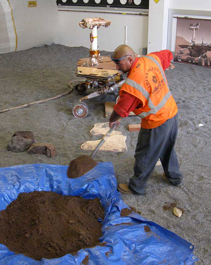 Nel frattempo, il gruppo di tecnici sta simulando a terra la situazione ed adesso è alla ricerca di una sostanza in grado di simulare il suolo marziano, il primo tentativo è stato infruttuoso perché la miscela di terreno costituita era troppo umida ed aderiva alle ruote del Rover usato a terra; si tenterà con una nuova miscela costituita da un cocktail d’argilla, sabbia e terra di diatomee, che dovrebbe avere la stessa consistenza della farina.