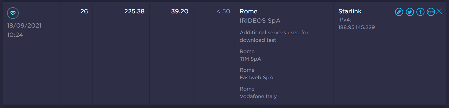 Gli Speedtest variano da 180 a 230 in download (me ne ho fatti pochi) e da 25 a 45 in upload.