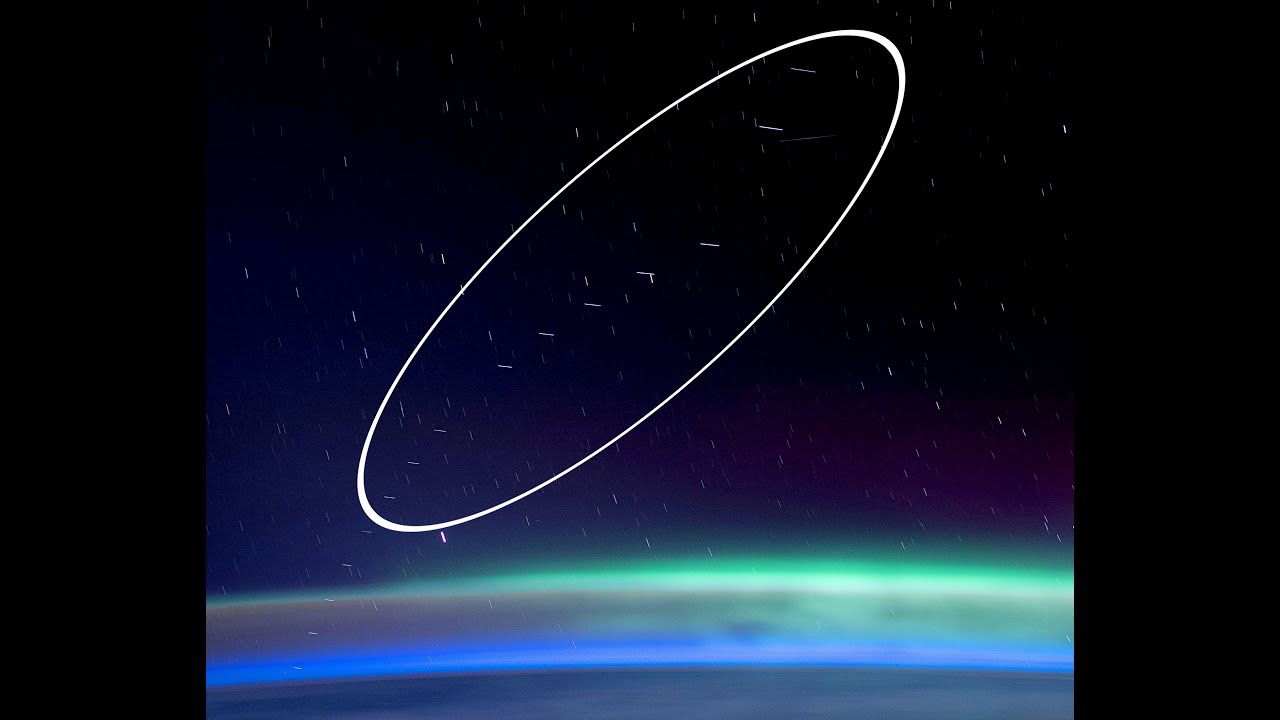 Scartabellando come mio solito con le foto scattate dalla ISS, ho trovato 3 frames in cui si vedono alcuni Starlink.