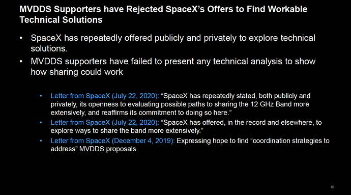 Slide 9: I sostenitori degli MVDDS hanno rifiutato l’offerta di SpaceX per trovare una soluzione tecnica: