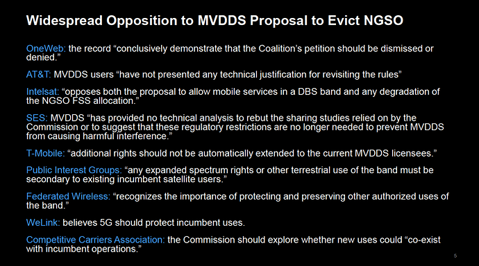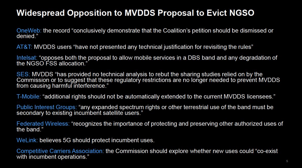 Slide 4: Ampia opposizione alla proposta degli MVDDS per sfrattare gli NGSO: