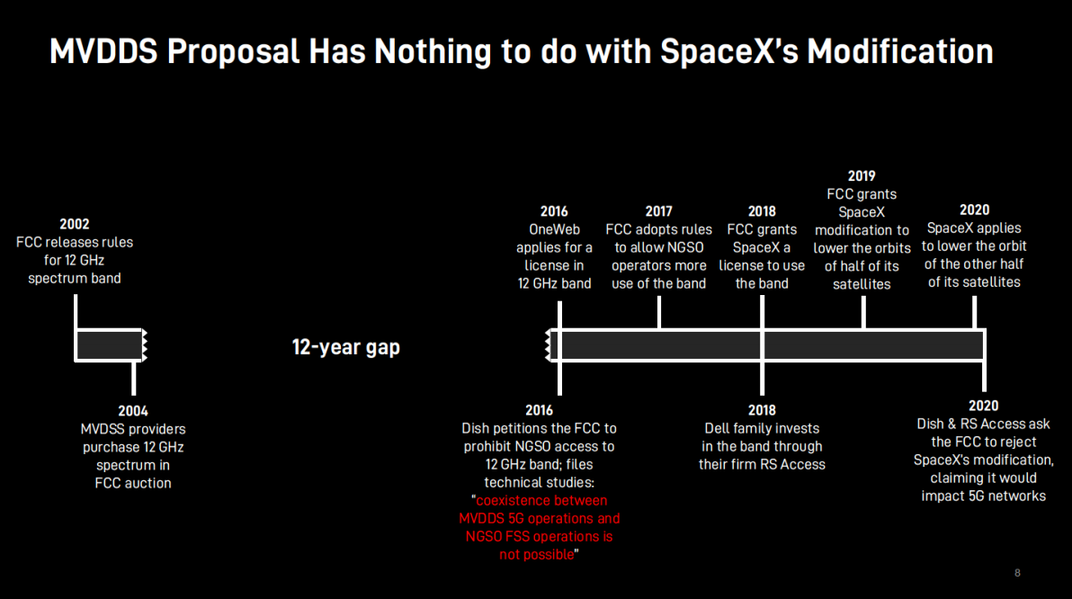 Slide 7: La proposta degli MVDDS non ha nulla a che fare con le modifiche di SpaceX:
