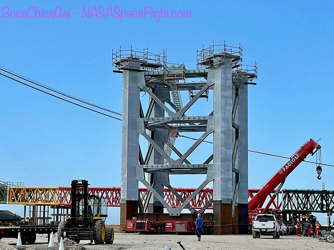 Inoltre, nelle ultime foto si notano molti pilastri arrugginiti uguali a quelli che abbiamo visto a Boca Chica, i quali venivano utilizzati per realizzare le varie sezioni della torre di lancio.