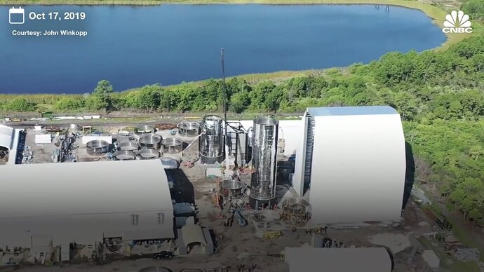 Da notare le due “mezzelune” all’inizio del video. Potrebbero essere parte del sistema di trasporto in orizzontale di Starship, a parere di NSF.