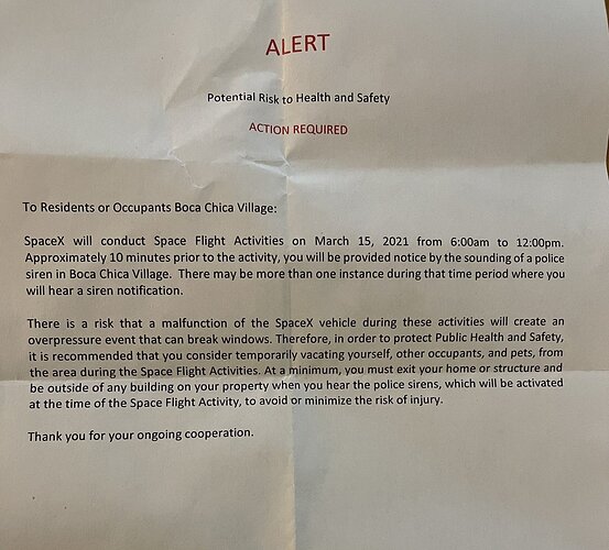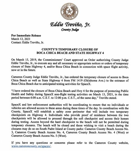 Aggiornamento NOTAM in vigore e chiusure strada programmate presso il complesso SpaceX di Boca Chica (TX)