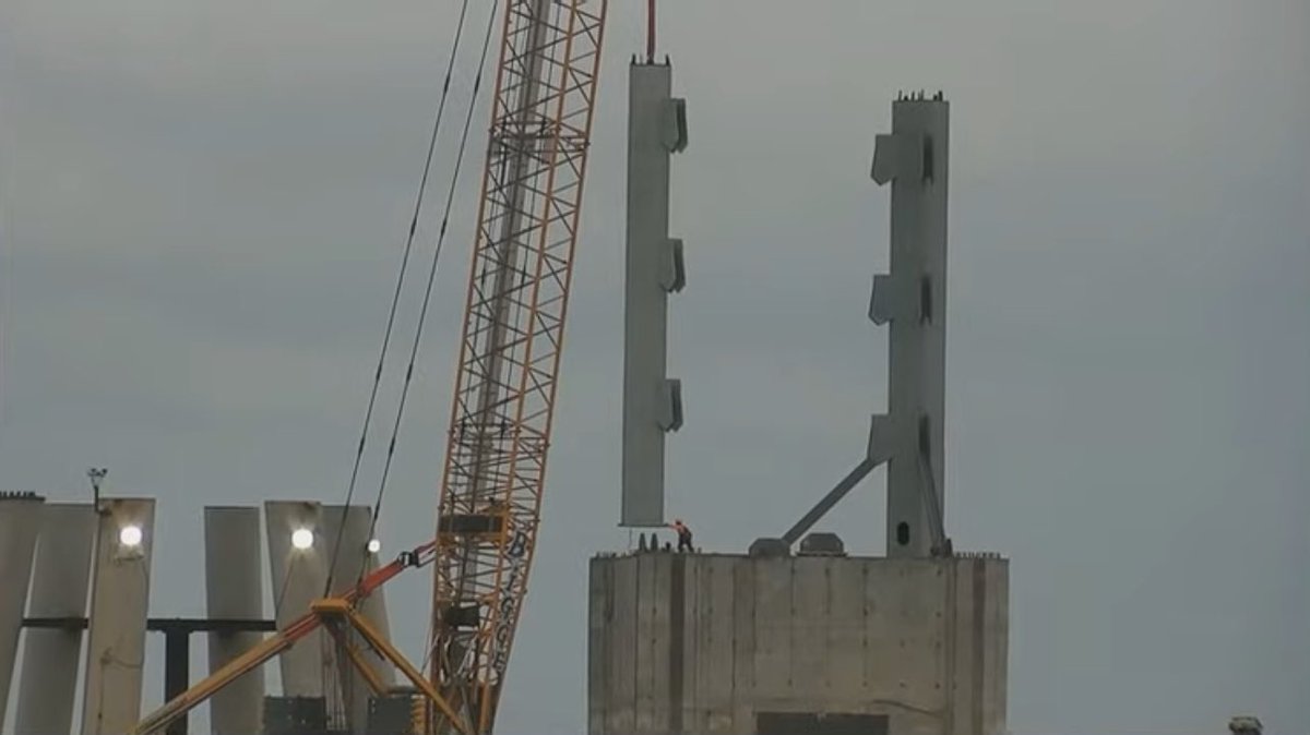 Terminata la base in cemento armato, inizia l’assemblaggio della torre.