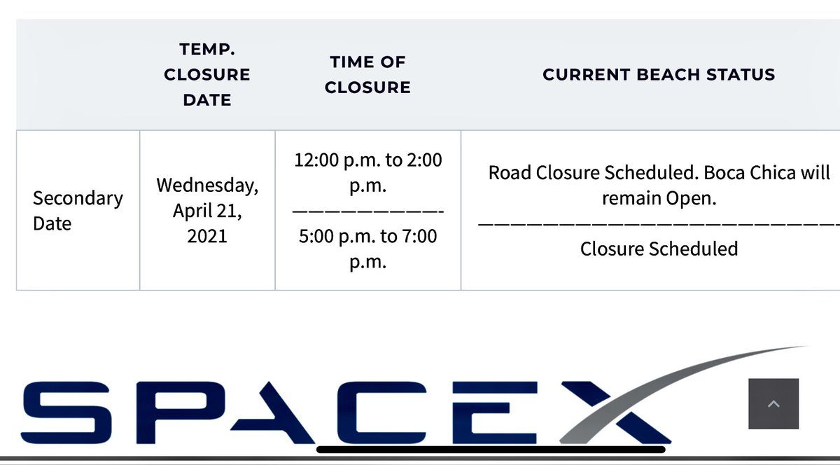 N. 210423 SpaceX Brownsville, TX: da 2021-04-23 12:00 a 2021-04-24 01:00 -
