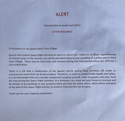 Strade chiuse e tank farm activity, venting e spurgo con azoto a temperature criogeniche, domani possibile static fire, come segnalato da Mary