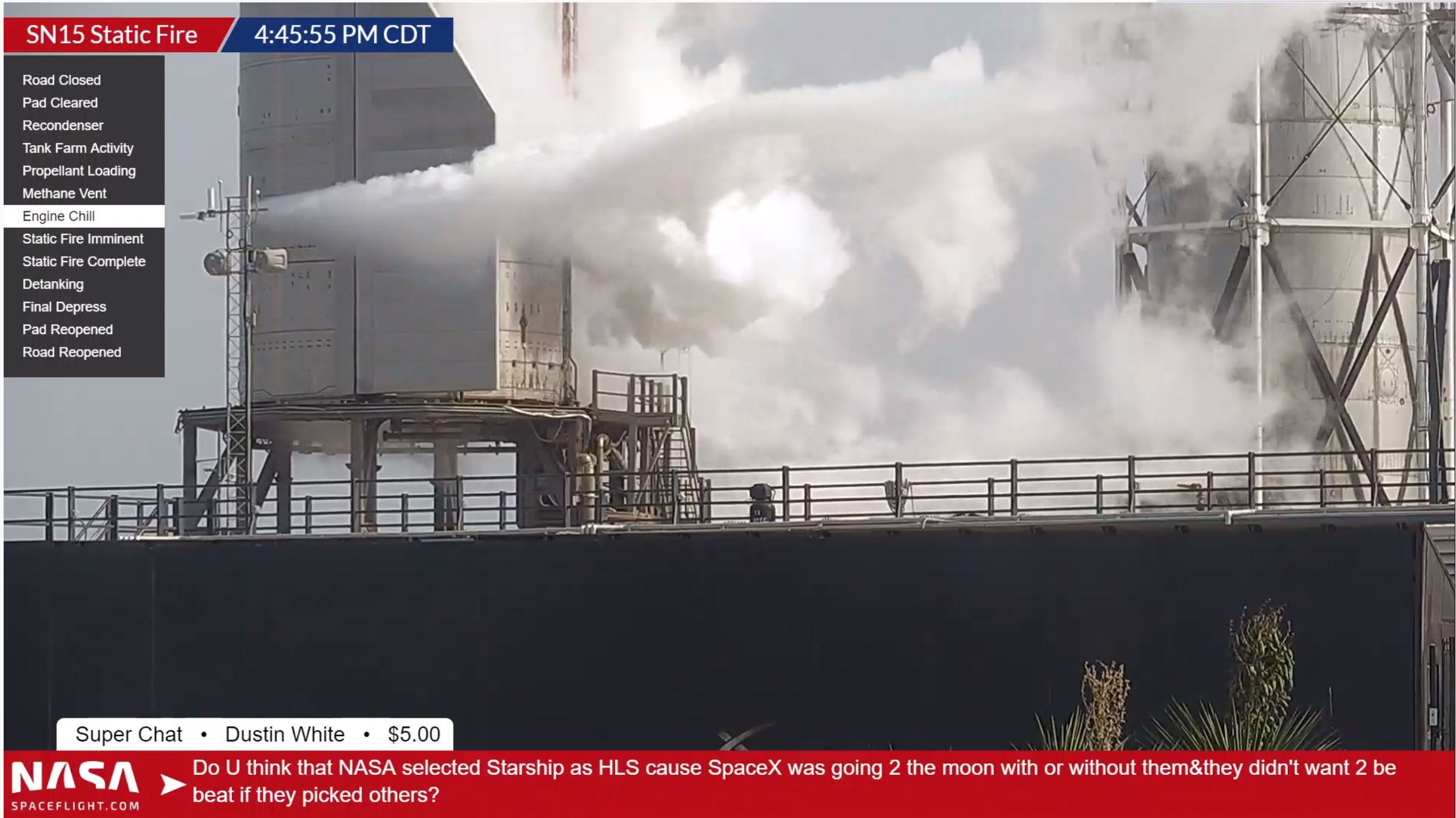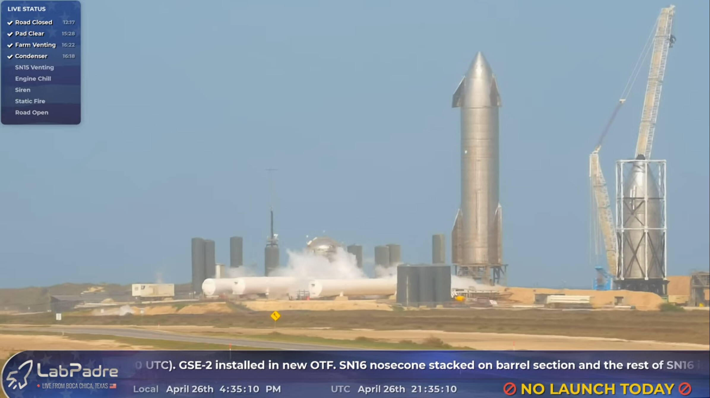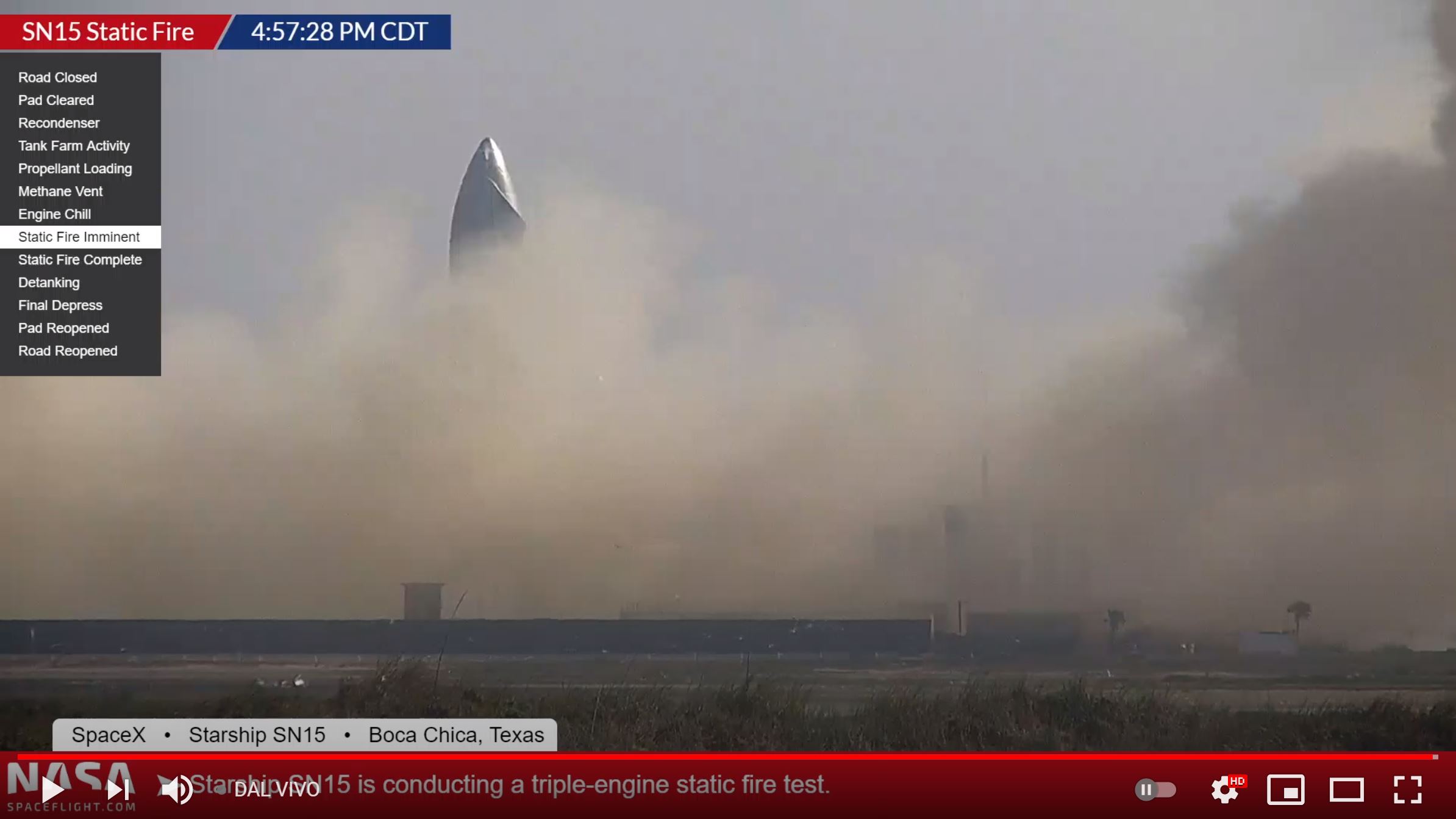 La notifica ricevuta da Mary e la chiusura strade sembrano indicare un possibile static fire di SN15.