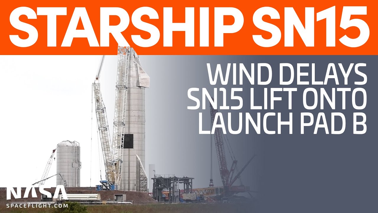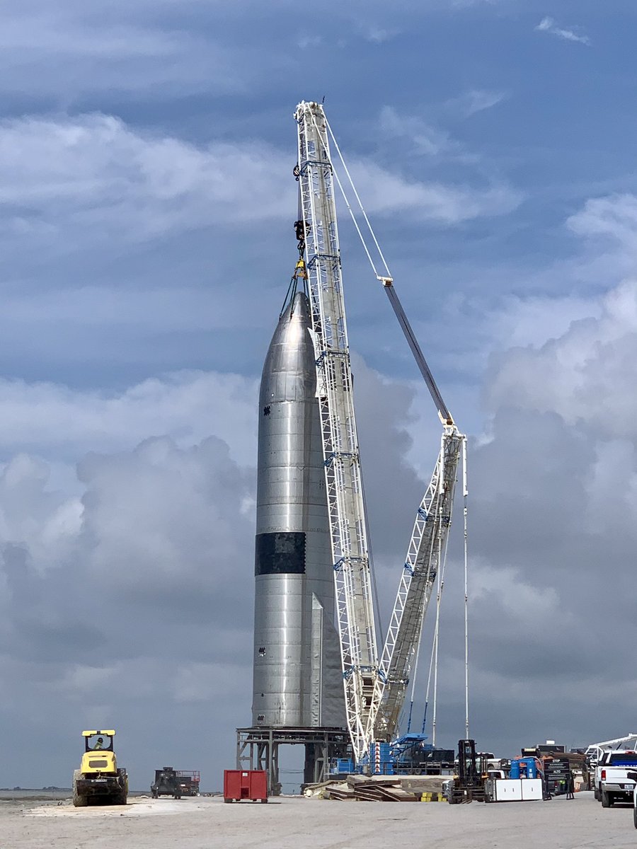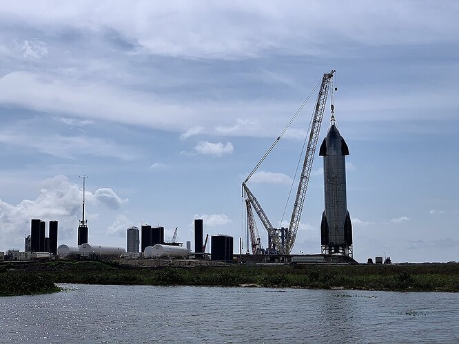 SN15 è stata finalmente spostata sopra al pad B. Per ora è ancora tenuta agganciata a Tankzillla.