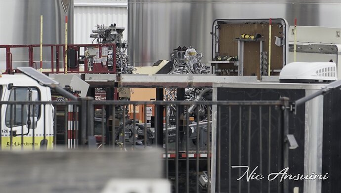 La visuale nelle fasi di scarico è stata molto scarsa, ma si sono potuti distinguere 4 raptor, fra cui un sea level e due Rbost.