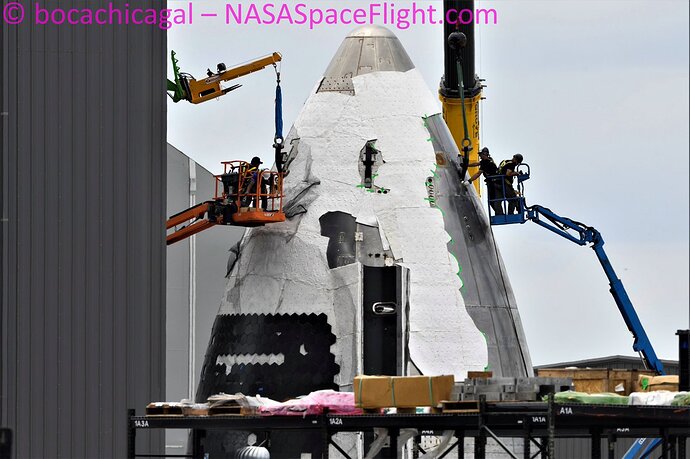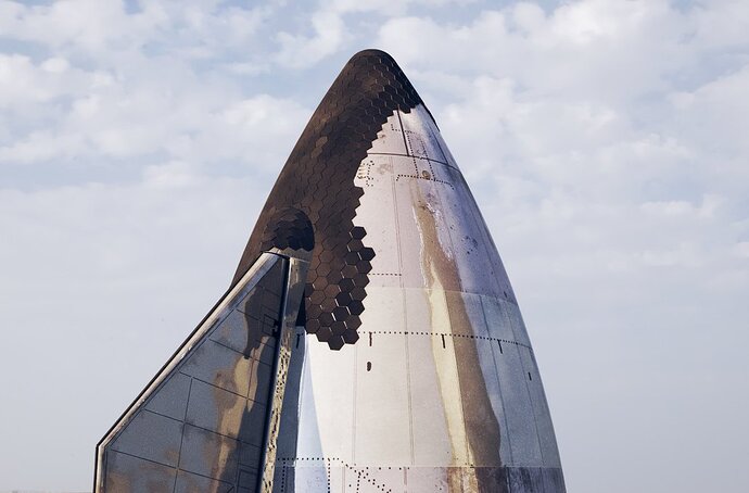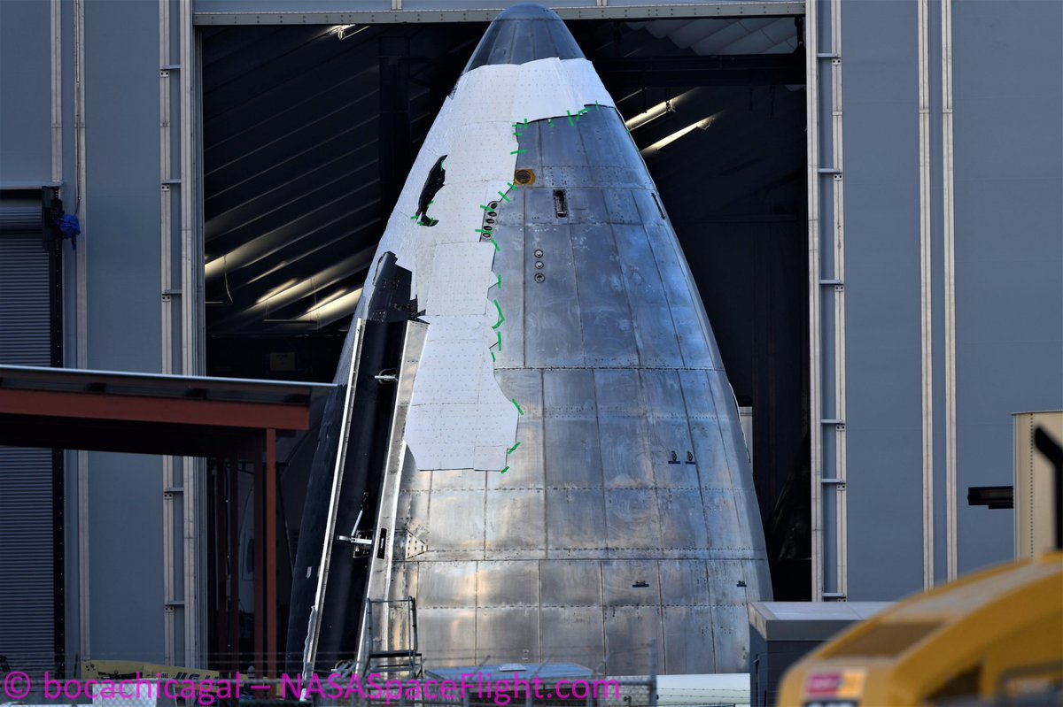 Si può iniziare ad intuire come sarà la forma del rivestimento del nosecone di S20, ed effettivamente dovrebbe risultare piuttosto vicina ai render di Alex Swan.