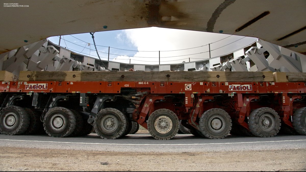 Passaggio ravvicinato durante il rollout dell’ orbital launch table. Si vedono bene i bracci interni.
