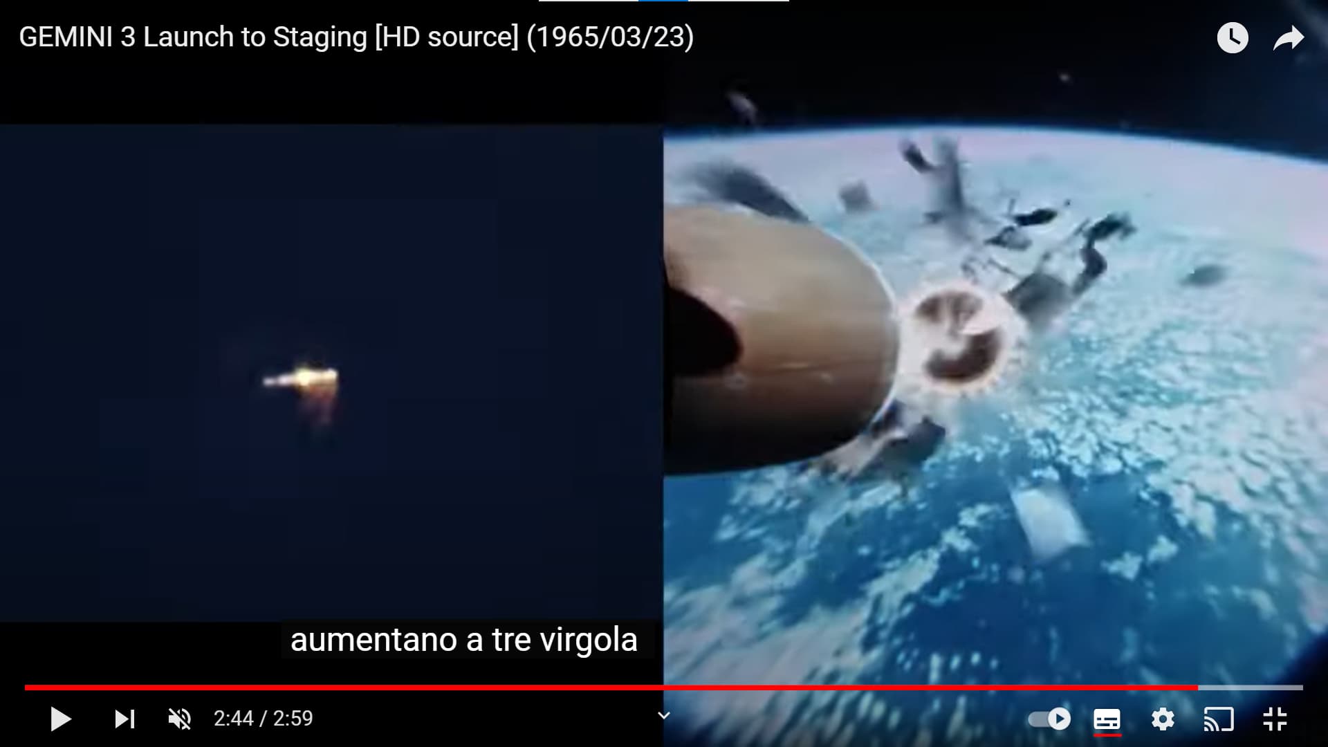 Se volete vedere dal vivo un hot staging l’effetto che fa (parafrasando Jannacci), basta osservare la separazione tra primo e secondo stadio di un razzo Titan II, in particolare qui abbiamo il lancio relativo alla missione Gemini 3: