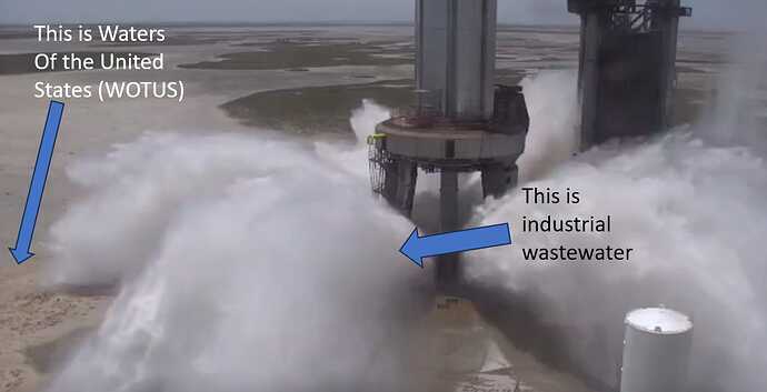 So, should SpaceX fire up a some Raptor engines and use the deluge system to dampen the intense heat and energy, any water that isn’t vaporized (much, but not all of it will) that runs over the silt fenceline adjacent to the launch pad will be an illegal discharge. SpaceX needs an individual TPDES permit that mandates collection, treatment, and eventual discharge.