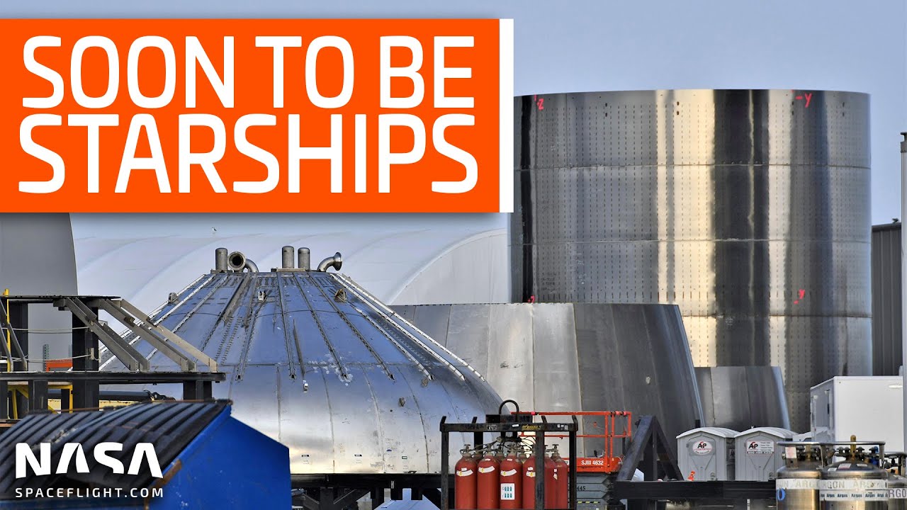 Visto che ci si chiedeva dell’altezza dei vari seriali, ho provato a calcolarla con un metodo un po’ rozzo_ i due uomini sul carrello elevatore sono praticamente allineati con la base di un anello. Supponendo tutti gli anelli alti uguali e le persone circa 1.70 metri, risulta che SN8 sia alta all’incirca 25 metri, essendoci 15 anelli.