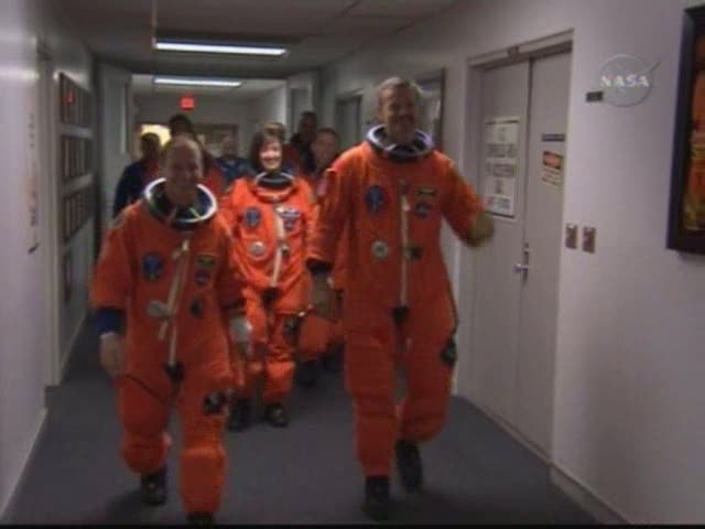 Il crew è giunto nella White Room, ora si sistemeranno uno alla volta nel corpartimento della navetta.