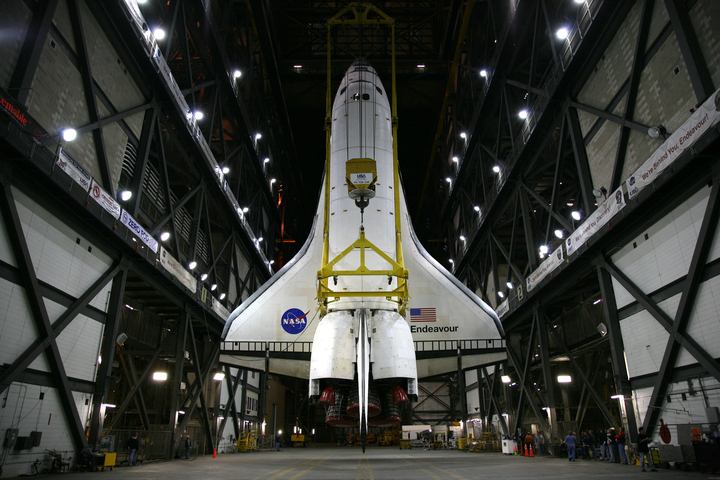 Endeavour è stato trasportato nella high bay 1 del VAB, dove si trovano già i SRB e l’ET sopra la MLP.