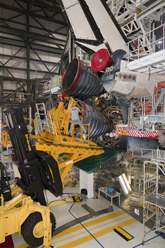 Terminata l’installazione degli SSME è stata avvicinata una piattaforma di servizio, utile per accedere alla parte posteriore dell’orbiter: