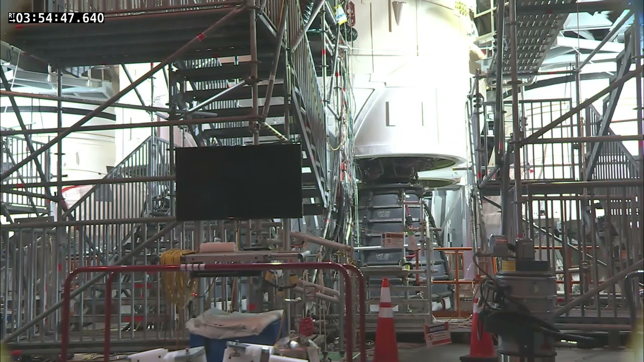 ed ecco l’adattatore installato sul core stage dello SLS, pronto per l’arrivo di Orion