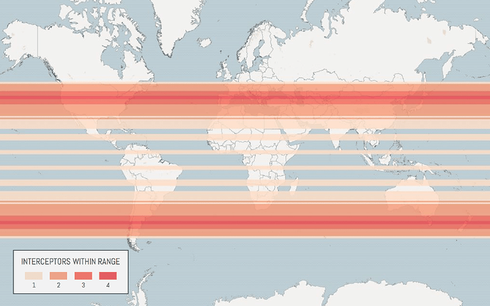 Una mappa che mostra il numero di satelliti necessari per assicurare la difesa degli Stati Uniti: