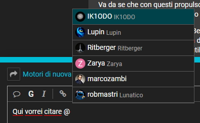 Per notificare altri utenti di una tua risposta, menziona il loro nome. Digita @ per iniziare la selezione di un nome utente.