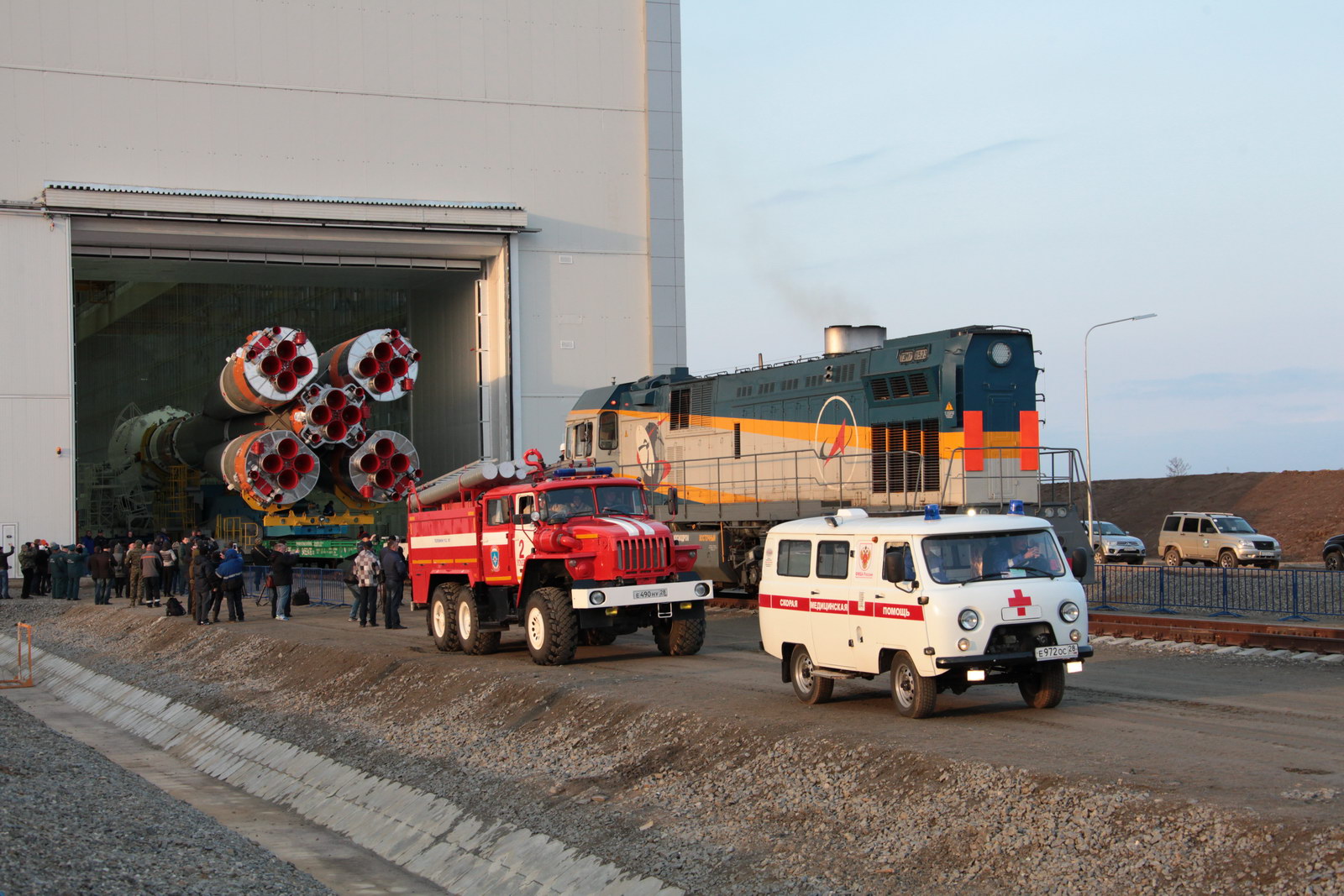 Rollout effettuato. In attesa del video, ecco un po’ di foto scelte (le altre sono qui). Abbiamo visto di meglio (dal punto di vista fotografico) ma è comunque il primo rollout ufficiale a Vostochny.