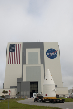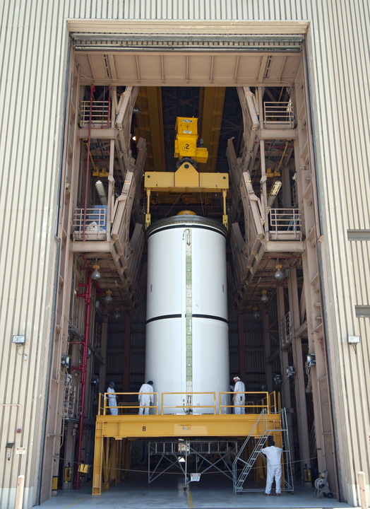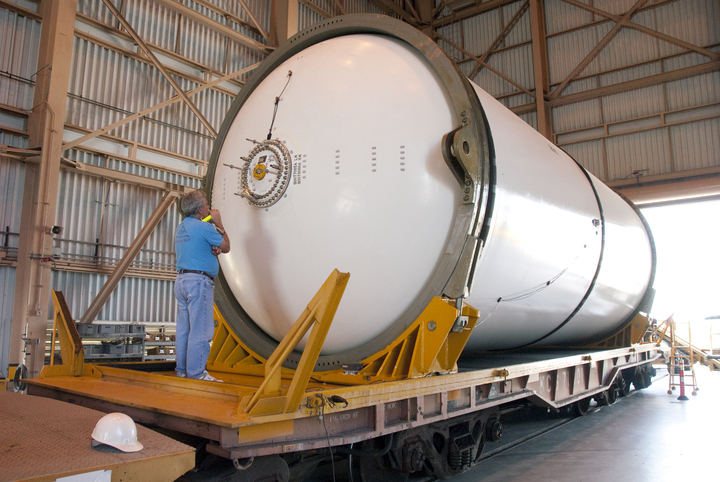 Nella Rotation, Processing and Surge Facility, al KSC, i segmenti degli ultimi SRB sono in fase di verifica.