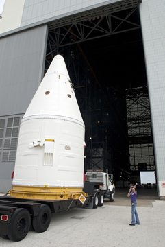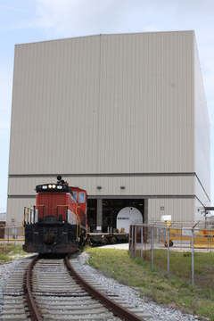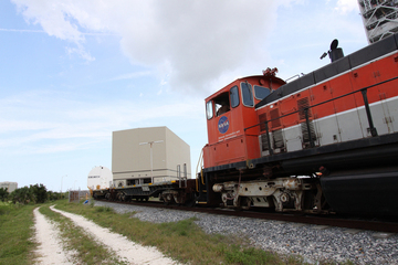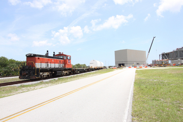 I segmenti dei SRB sono arrivati alla Rotation, Processing and Surge Facility a bordo del “trenino” della NASA