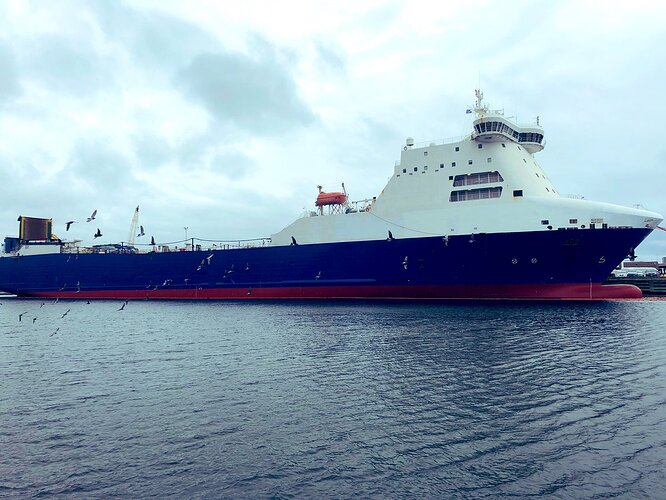 Segnalo che vanno avanti molto bene anche i lavori sulla nave che farà da base d’atteraggio per il primo stadio del New Gleen