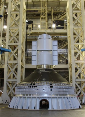 Omega continua la sua marcia anche al KSC. Il basamento dell Mobile Launch Platform 3 ora sorregge la parte inferiore della torre che è completa.