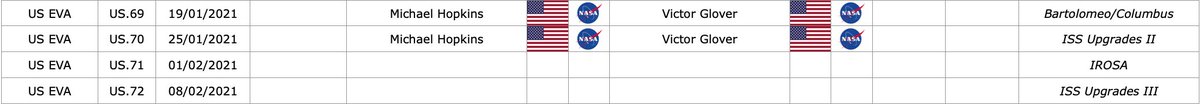 Al momento non si conosce ancora (EDIT: vedi post seguente) il nome degli astronauti che ricopriranno i ruoli di EV 1 e EV 2, tantomeno la data. È probabile che venga comunque effettuata entro fine gennaio 2021.