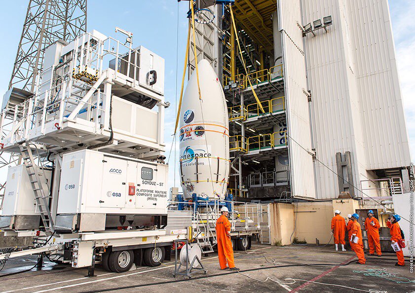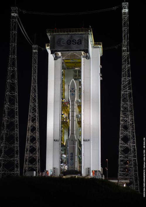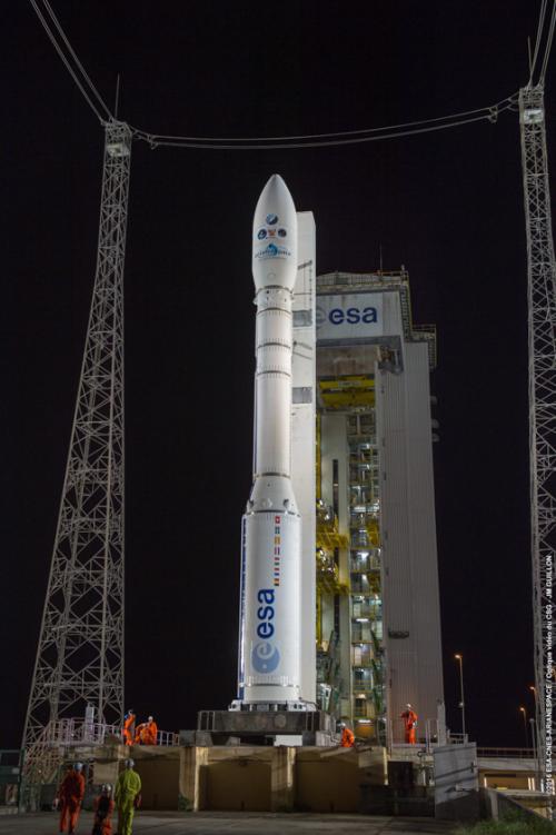 Le foto del 1° giugno, invece, mostrano il trasferimento del primo stadio (P80), prodotto da CNES, dal BLP (Edificio vettori a propellente solido) alla zona di lancio
