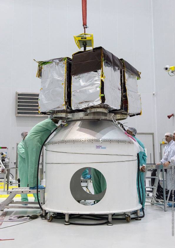 Il satellite peruviano ha superato un’altra fase della preparazione pre-lancio. La verifica dell’aggancio con l’adattatore che lo fisserà in cima al razzo.
