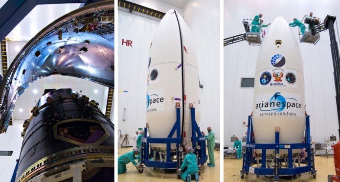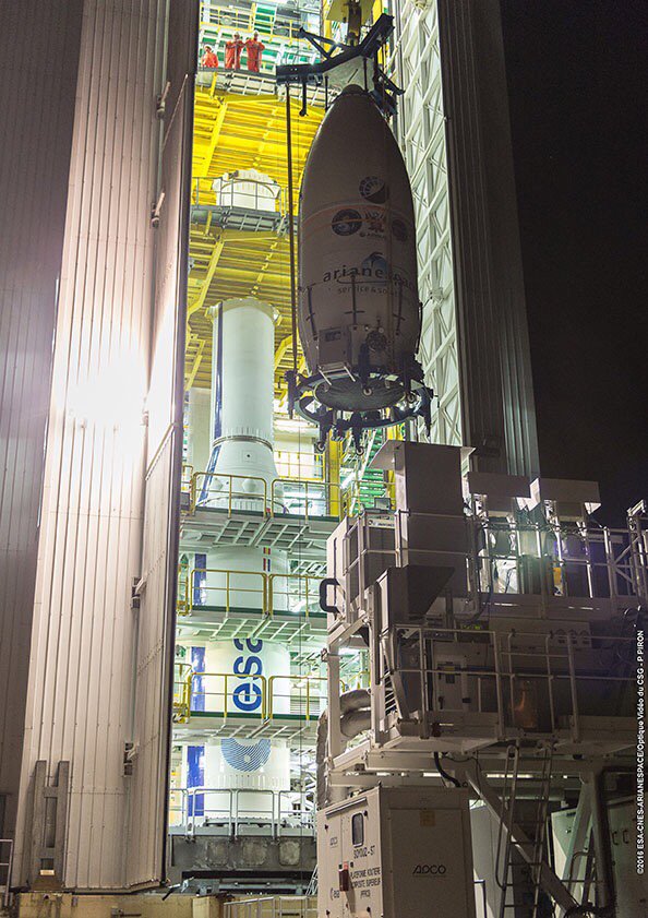 La “campagna” è iniziata già nei primi giorni del 2016, con l’approdo al porto di Pariacabo delle prime parti del vettore. Nelle foto sotto, del 5 gennaio, si movimenta Zefiro 9, il terzo stadio a propellente solido, prodotto dall’italiana AVIO. (Altre foto qui)