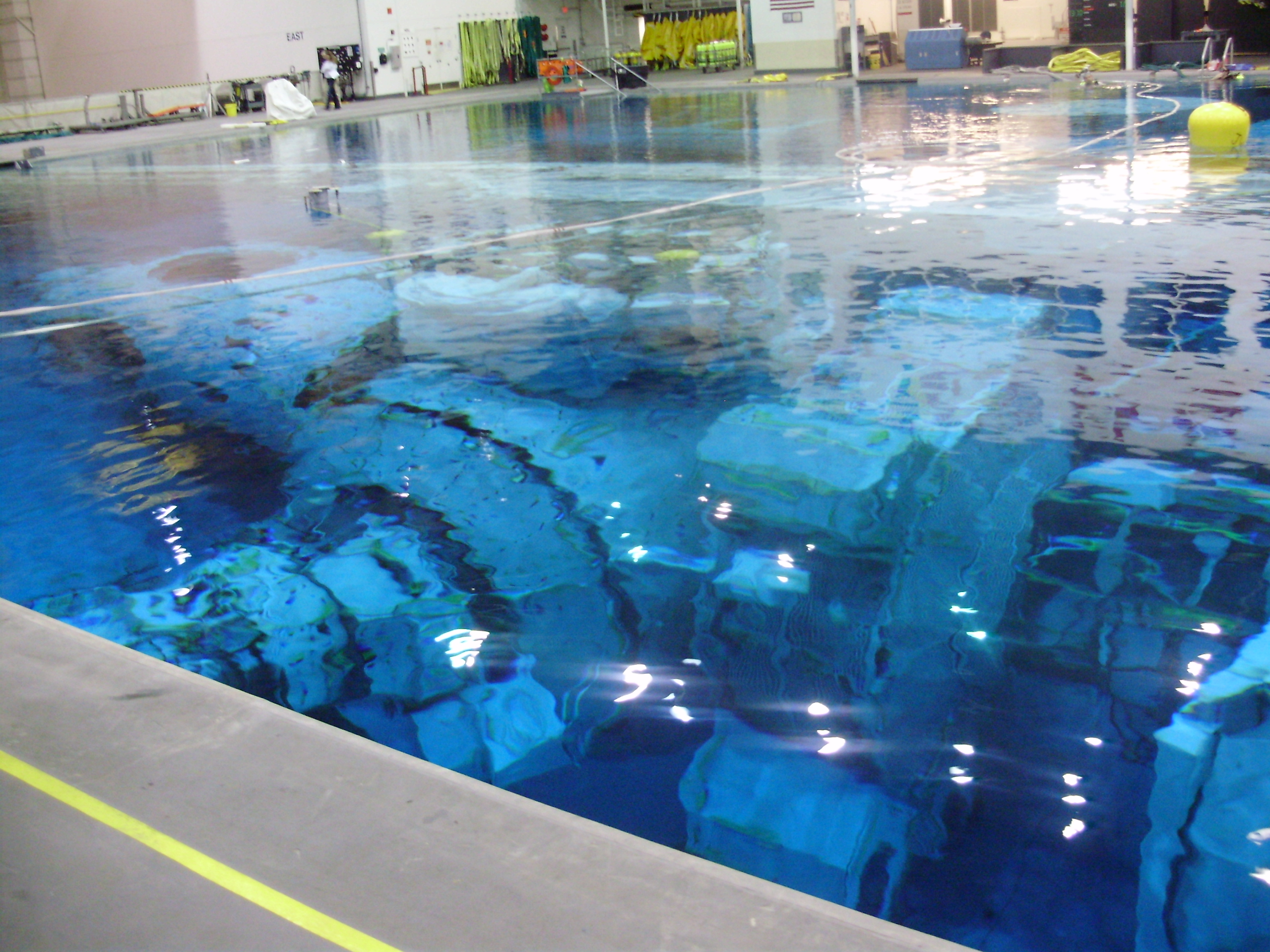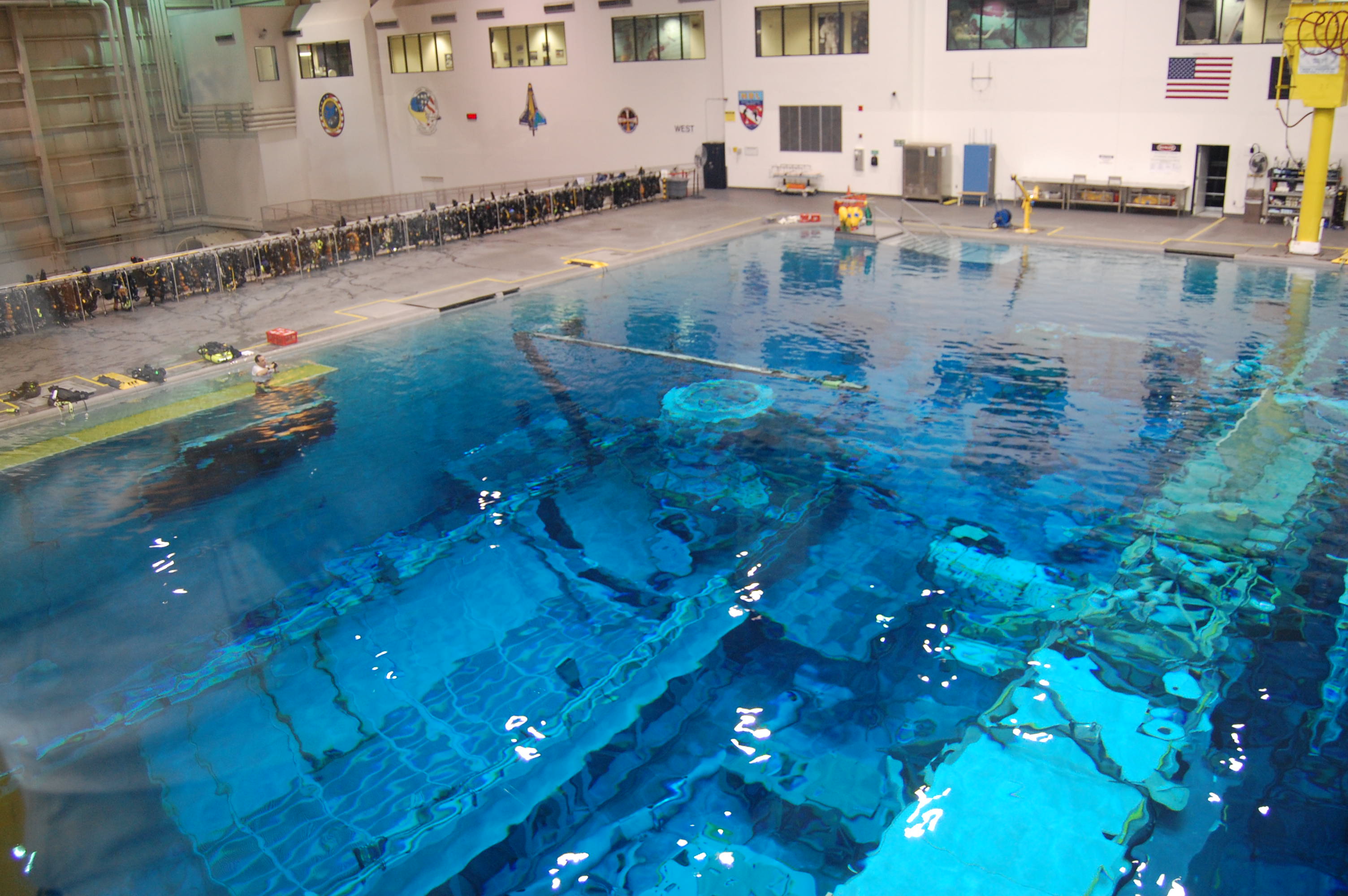 A destra della foto, la piscina continua, e c’è la payload bay dello shuttle.