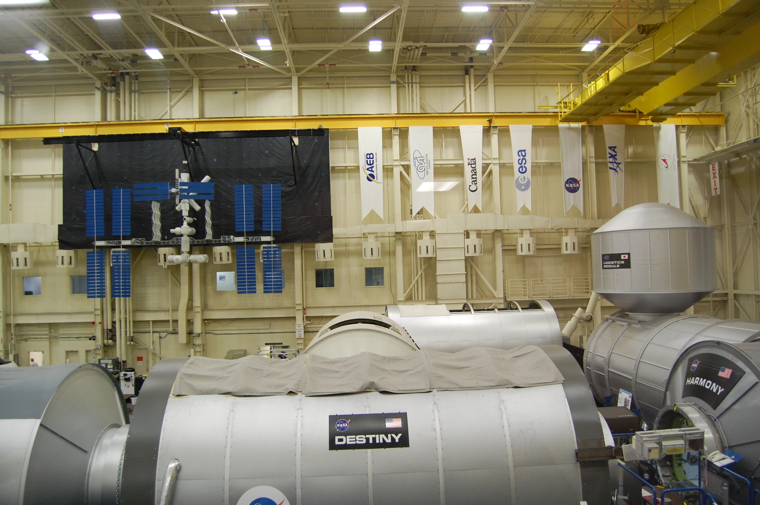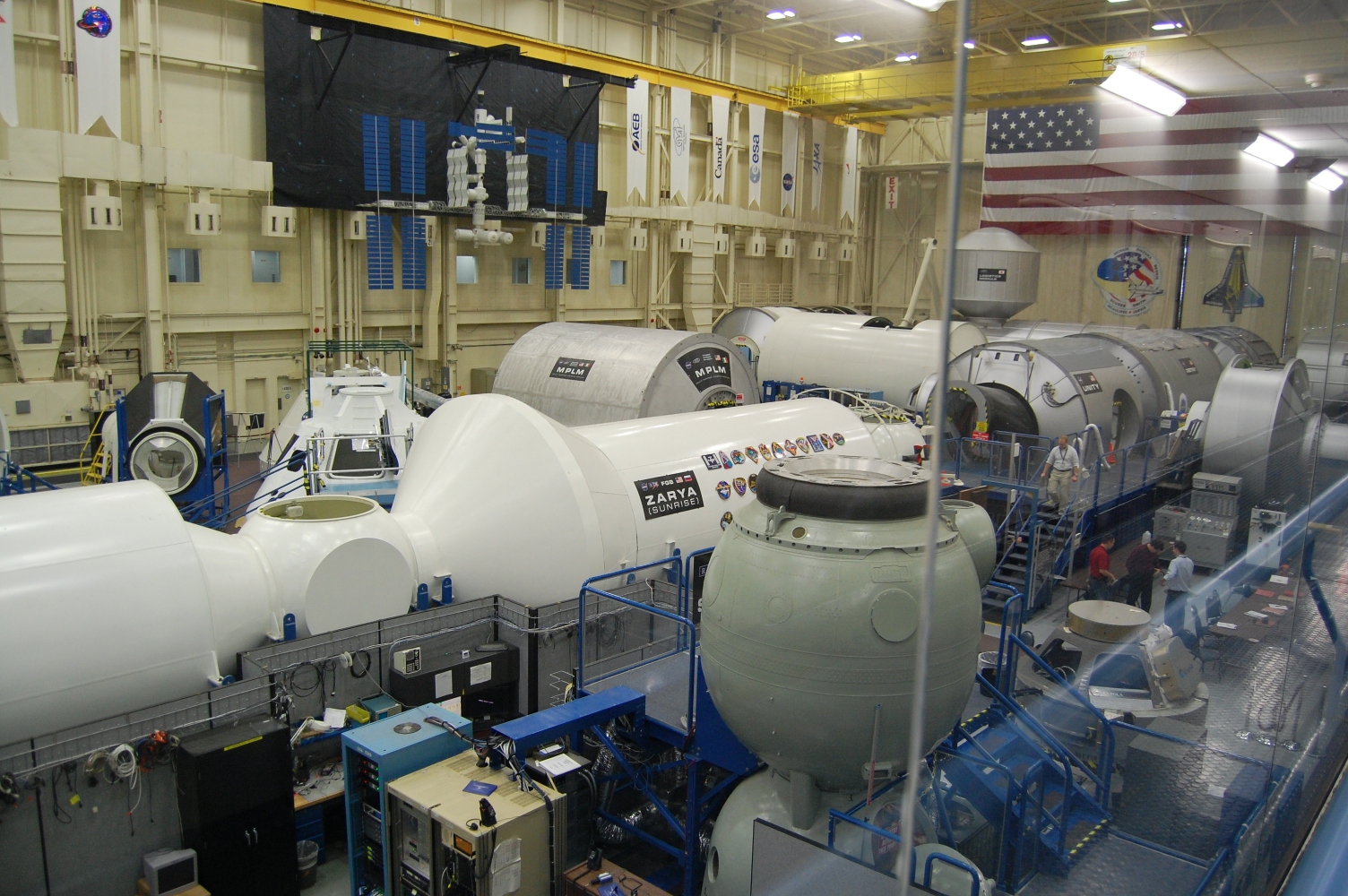 Ora qualche vista della ISS. Hanno la stazione intera tutta insieme, compresa la sezione russa. I moduli sono tutti uno vicino all’altro nella loro reale posizione, ma sono separati, in modo da poter gestire il training di vari astronauti in parallelo.