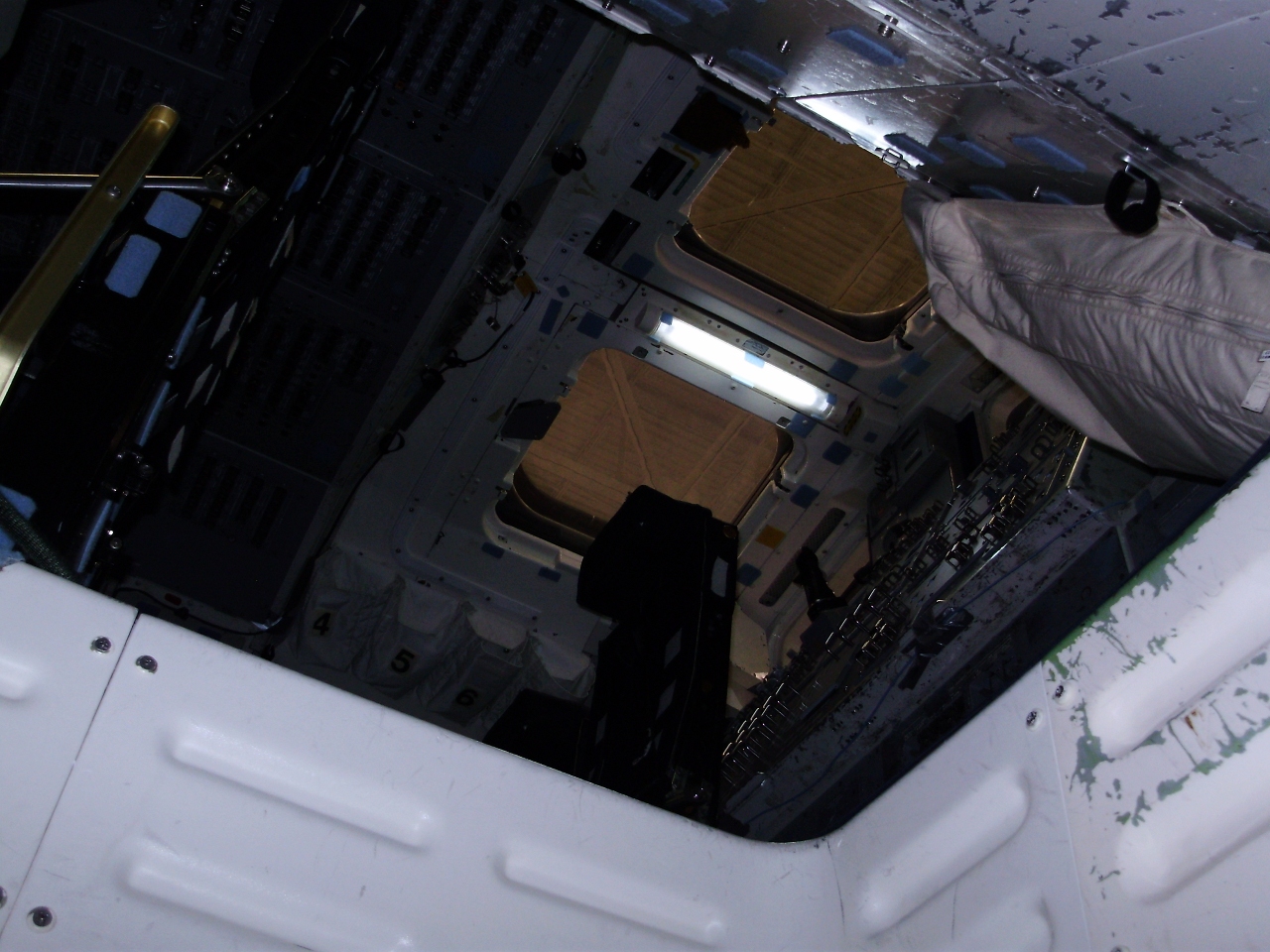 Anche questo è davvero piccolo. Arrivare a sedersi ai comandi è una faticaccia. Farlo con una tuta e con lo shuttle ruotato di 90 gradi deve essere quasi impossibile…