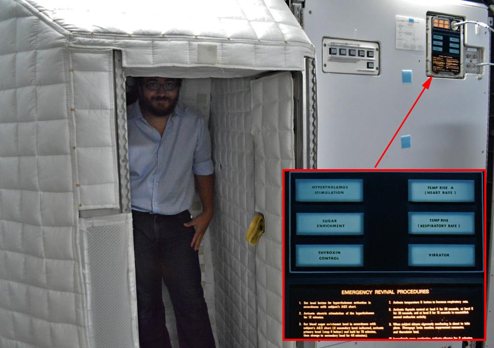 A occchio avrei detto che quello è l’ATU, ma guardandolo zoomato sembra qualcos’altro. Il piccolo pannellino a destra (con 4 connettori, di cui uno solo connesso) è quello che collega l’ATU a uno dei 4 crew compartments. L’ATU viene usato per comunicare con terra ma è anche quello che suona gli allarmi, il pannellino serve per collegarlo a una cassa dentro uno dei quattro crew compartments, in modo che uno dei quattro astronauti senta gli allarmi anche mentre tutti dormono e poi svegli gli altri. In genere, se il comandante è americano, lo collegano al suo crew quarter.
