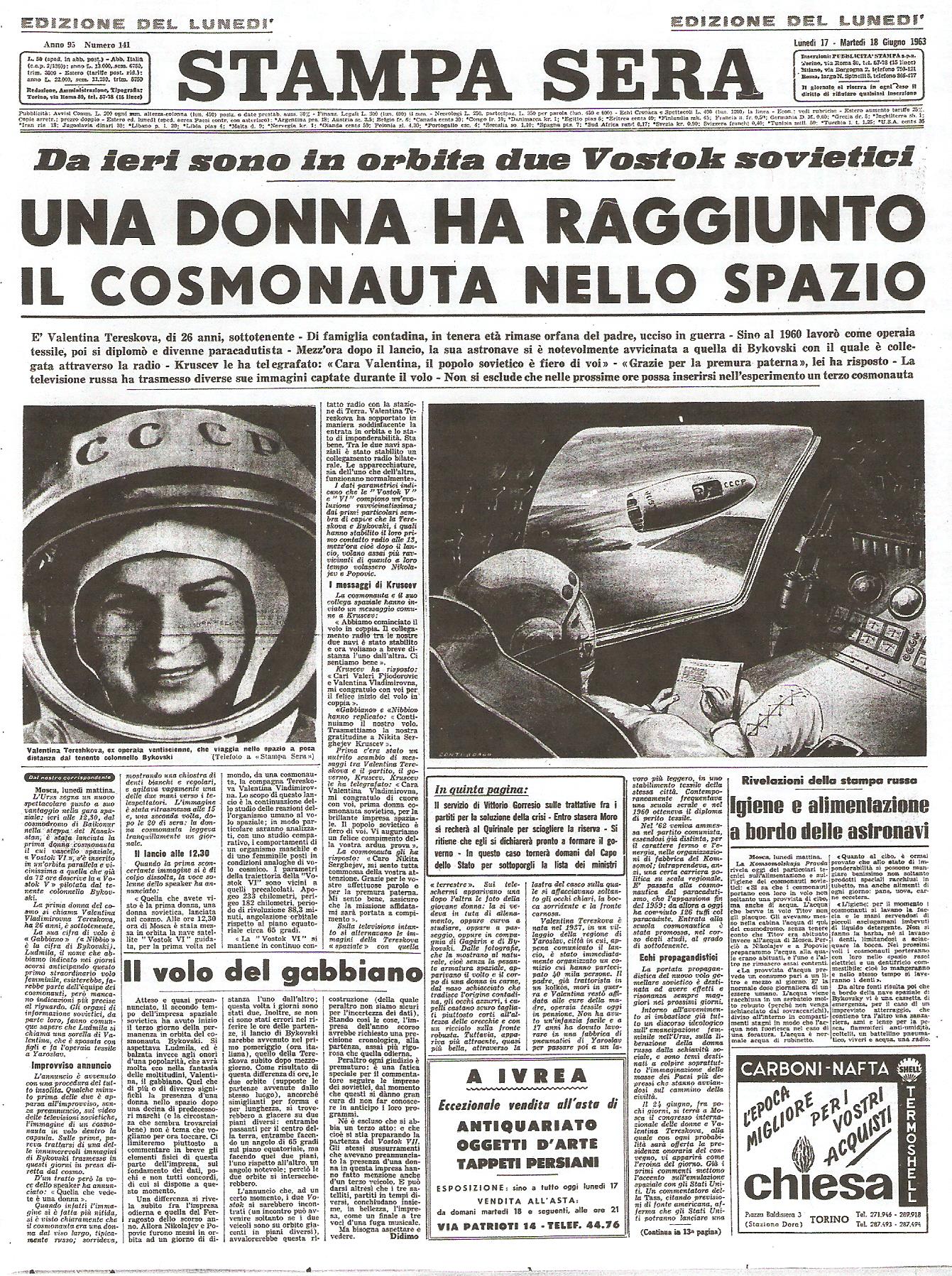 Sapevate che la Tereshkova fu la prima in assoluto a portare una patch della missione?